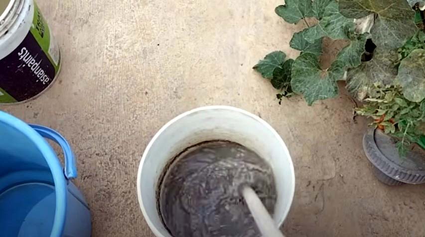 ఐదు లీటర్ల వేస్ట్ డీ కంపోజ్ ద్రావణంలో అరకిలో గింజల పౌడర్, కార్బన్, పొటాషియం ఉండి మొక్కలకు చాలా సహాయం చేసే 50 గ్రాముల కట్టెల బూడద కలుపుకోవాలి. వేస్ట్ డీ కంపోజ్ ద్రావణం, గింజల పొడి, బూడిదను ఒక కట్టెతో బాగా కలపాలి. మిశ్రమం ఉన్న డబ్బాకు కొద్దిగా గాలి తగిలేలా చిన్నమూతతో గాని, పల్చటి బట్టతో కానీ కప్పాలి. ఈ మిశ్రమాన్ని రోజూ ఒకసారి కలుపుతూ ఉండాలి. ఏడు రోజులు కలిపేసరికి బాగా పర్మంటేషన్ అవుతుంది. ద్రావణం పైన తెట్టులా వస్తుంది. ఇందులో హెల్దీ బ్యాక్తీరియా బాగా అభివృద్ధి చెందుతుంది.