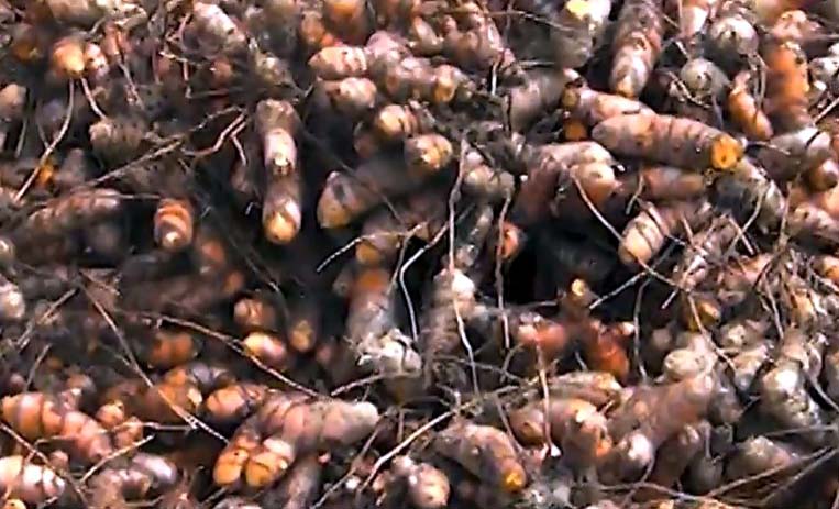 మరో రైతు శ్రీనివాసరెడ్డి మూడేళ్లుగా నూతక్కిలో ఆర్గానిక్ పసుపు పంటనే పండిస్తున్నారు. సేలం వెరైటీలో కుర్కెమిన్ శాతం ఎక్కువ వస్తోందన్నారు. తాము బెడ్స్ విధానంలో మొక్కలు నాటి, డ్రిప్ ఇరిగేషన్ అవలంబిస్తున్నాట్లు తెలిపారు. ఈ రకం సాగు విధానంలో విత్తనం ఎకరాకు 7 క్వింటాళ్లకు మించి పట్టదన్నారు. దుక్కి బాగా మెత్తగా దున్నుకుని విత్తనాలు నాటుకోవాలన్నారు. బెడ్ విధానంలో పసుపు సాగు చేస్తే.. కలుపు తగ్గుతుందని, పంట ఆరోగ్యంగా ఉంటుందని చెప్పారు. పంట డ్యామేజ్ కాదు, పుచ్చు పట్టడం, కుళ్లు లాంటి ఇబ్బందులు రావు అన్నారు. బెడ్లను దుక్కిని బట్టి కనీసం అడుగు ఎత్తు, నాలుగు అడుగుల వెడల్పుగా తయారు చేసుకోవాలని శ్రీనివాసరెడ్డి సూచించారు. ఇలాంటి ఒక్కో బెడ్లో రెండు సాళ్ల చొప్పున విత్తనాలు నాటుకొని, పంట సాగు చేస్తే.. మేలైన దిగుబడి వస్తుందని చెప్పారు. మొక్కకు మొక్కు మధ్య 7 అంగుళాల దూరం ఉండాలన్నారు. మిషన్తో అయితే.. 7 అంగుళాల దూరమే నాటుతుందన్నారు. డ్రిప్ ద్వారా పసుపు మొక్కలకు రోజుకు గంట, గంటన్నర నీరు వదిలితే సరిపోతుందన్నారు. తక్కువ నీటి సరఫరా వల్ల మొక్కల మధ్య కలుపు చాలా తక్కువ వస్తుందని, వాటిని చాలా తేలికగా తీసేయవచ్చని చెప్పారు. ఎంత అధికంగా వర్షాలు కురిసినా బెడ్ల మీద పొడిగానే ఉంటుందని తెలిపారు.