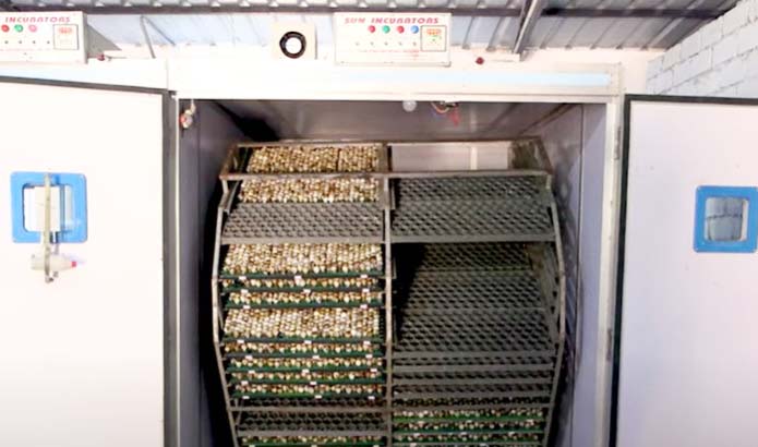 ఇన్క్యుబేటర్లో పెట్టిన కౌజుపిట్ట గుడ్ల నుంచి 17 రోజులకు పిల్లలు బయటికి వస్తాయి. వాటిని హ్యాచరీలో వేస్తారు. నెలకు లక్ష కౌజుగుడ్లను పొదిగే విధంగా కృష్ణారెడ్డి ఏర్పాట్లు చేశారు. ఇన్క్యుబేటర్ ఖరీదు సుమారు రూ.5 లక్షలు ఉంటుంది. కౌజుపిట్టల ఫార్మింగ్ను ముందుగా మార్కెటింగ్ చూసుకోవాలని కృష్ణారెడ్డి చెప్పారు. అత్యాశకు పోయి ఒకేసారి పెద్దమొత్తంలో కాకుండా ముందు కొద్దిమొత్తంలో పిట్టలన పెంచుకోవాలని, మార్కెటింగ్ చేసుకునే సత్తాను బట్టి వాటి పెంపకాన్ని పెంచుకోవాలని సలహా ఇచ్చారు. కౌజుపిట్ట మాంసానికి 365 రోజులూ డిమాండ్ ఉంటుంది. లైవ్ బర్డ్ అమ్మాలనుకుంటే మాత్రం ఎండాకాలంలో కొద్దిగా తగ్గుతుంది. రైతులు ఎవరు కౌజుపిట్టలను పెంచుకున్నా లాభసాటిగా ఉంటుందన్నారు కాకపోతే కాస్త ఓపికతో కష్టపడి చేసుకోవాలని కృష్ణారెడ్డి సలహా.