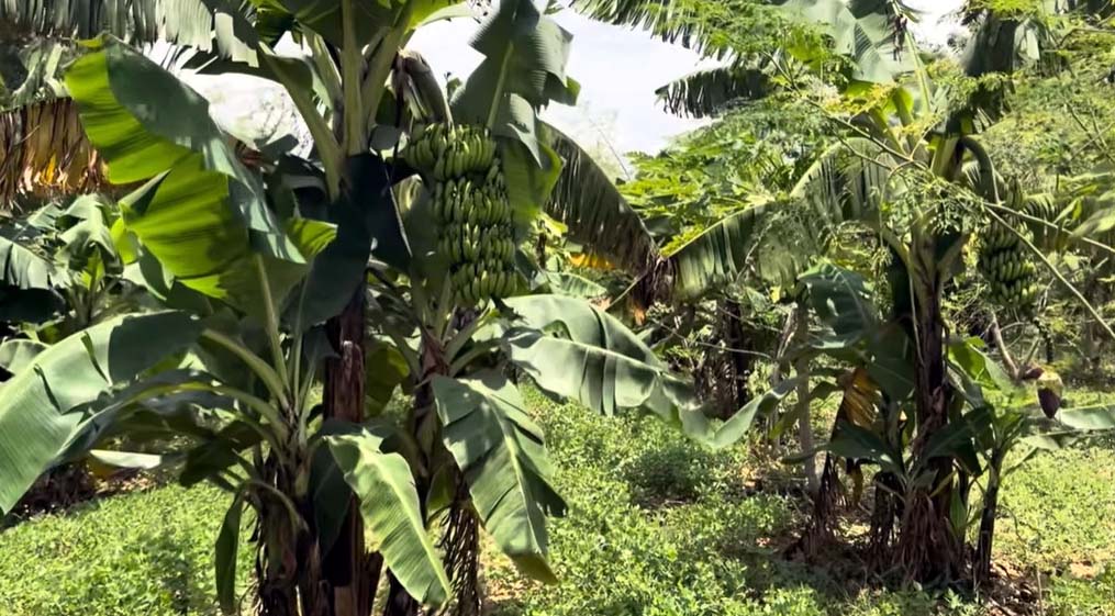 ఎకరం పొలంలో 100 మునగ, 100 బొప్పాయి, 100 అరటి మొక్కలు నాటారు శాంతి. దాంతో పాటుగా భూమికి లైవ్ ఆచ్ఛాదన బొబ్బర్లు, ఉలవలు సాగు చేశారు. నేలపై కలుపు ఉన్నప్పుడే తాను బొబ్బర్లు, ఉలవ విత్తనాలు చల్లినట్లు తెలిపారు. ఈ విత్తనాలు మొలిచిన తర్వాత కలుపు మొక్కలు పీకినప్పుడు బొబ్బర్లు, ఉలవల మొక్కల మొదళ్లలోని భూమి గుల్లగా మారిందన్నారు. ఈ మొక్కలే ప్రధాన మొక్కలకు ఆచ్ఛాదనగా, భూమిలో నైట్రోజన్ ఫిక్స్ చేసేవిగా, వానపాములు పెరిగేలా, భూమికి సారాన్నిచ్చేలా పనికి వస్తాయి.